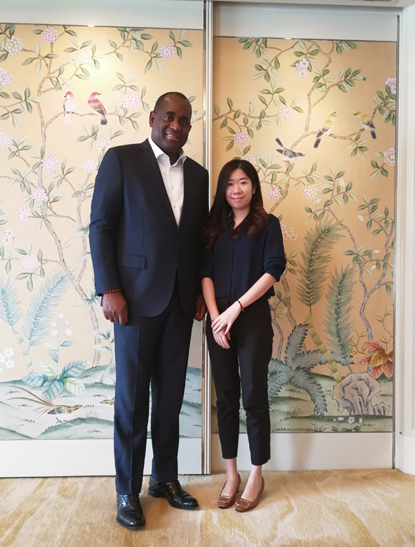 瑞丰德永集团广州公司总经理杨咏仪女士与多米尼克总理罗斯?!に箍锾叵壬?Mr. Rossevelt Skerrit)合影