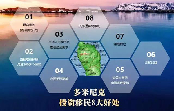 多米尼克国位于东加勒比海小安地列斯群岛东北部,东临大西洋,西濒加勒比海,占地约751 平方公里,总人口约七万,为英联邦成员国。多米尼克坐拥阳光与海滩,加上人口密度低,每年均吸引不少旅客前来度假及参与各式各样的水上活动,更为希望远离繁嚣的都市人,提供一个移民的好选择。