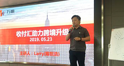 跨境电商政策红利期已驱动我国跨境电商进入了黄金发展期,带动跨境贸易支付需求的增长。万唯金融华东销售总监Larry就“收付汇助力跨境升级”作了主题分享,让技术助力传统企业转型升级,加速跨境电商支付智慧化进程。