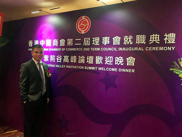 典礼上,香港中国商会董事会、理事会主席陈经纬致辞表示,商会自2009年成立以来,已凝聚多位来自香港、中国内地以及海外华人企业家和专业人士。商会先后举办了中国海外投资年会、香港大讲堂等系列活动,为“一带一路”建设和全面实施国家对外开放新格局,做出了实际贡献。同时,为了响应国家“十三五”规划,商会发起成立了“紫荆谷创新创业发展中心”,支持港澳中小微企业和青年人在内地发展创业,支持内地与港澳开展创新及科技合作,积极推动“大众创业,万众创新”。