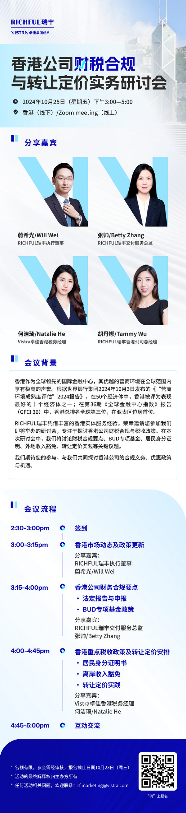 活动邀约 | 香港公司财税合规与转让定价实务研讨会