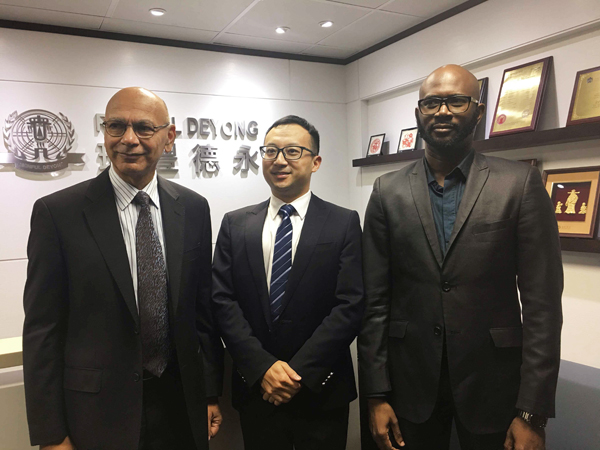 (集团高层龚彦斌先生与移民部长Les Khan先生和律师Scantlebury先生在我司香港总部合影)