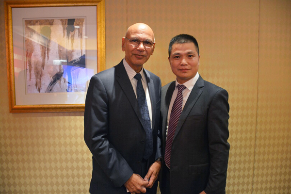 (集团董事长陈洪松先生与移民部长Les Khan先生在见面会上合影)