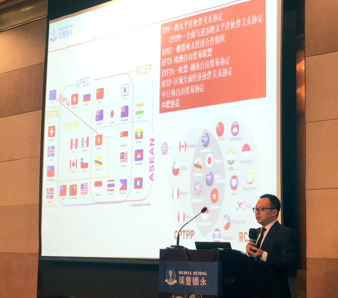 3月25日,由厦门国际商会、瑞豐德永集团联合主办的「RCEP下企业出海机遇与挑战-跨境企业高端沙龙」主题高端研讨会在厦门市海景千禧大酒店顺利举行。来自厦门市国有、外资、民营外贸企业的60多位代表参加了本次会议。