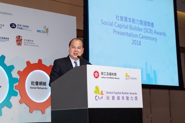 压轴环节为社会资本动力奖颁奖礼,由政务司司长张建宗先生,GBS,JP莅临主礼,表扬卓越基金计划、协作伙伴,以及对建立社会资本有重要贡献的机构和人士。