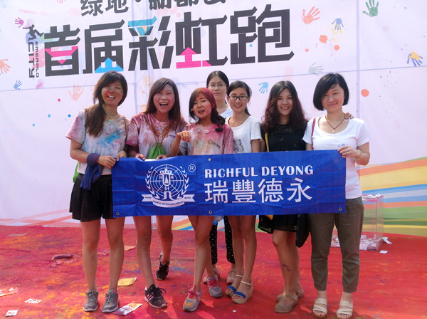 2014年9月26日,首届宁波彩虹跑在慈城新区举行,瑞丰德永宁波公司员工参加了此次活动。彩虹跑(The Color Run)被誉为是全世界最欢乐、最多彩的mini马拉松,与强调竞速的跑步比赛不同,彩虹跑活动更注重的是快乐、色彩和健康的重要性,传播快乐和正能量,而且此次活动的报名费将全数捐给宁波红十字会“光明天使”项目,捐助贫困角膜移植患者,是一场名副其实的社会公益跑步活动。