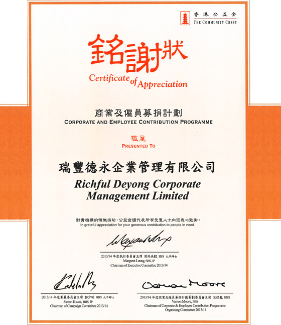 瑞丰德永一向热心参与公益慈善活动,造福社群。瑞丰德永全力支持今次筹款活动,为香港公益金筹募善款,让瑞丰德永展开新里程的同时,回馈社会,资助本地社会福利服务,与有需要人士分享成果。