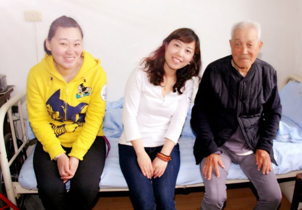 给我印象最深的是已经住在这里十年的韩爷爷,他是三无老人而且身患残疾,坐轮椅行动,可是他非常喜欢说话,给我们讲了好多老大连的故事,至今还让我们津津乐道。
