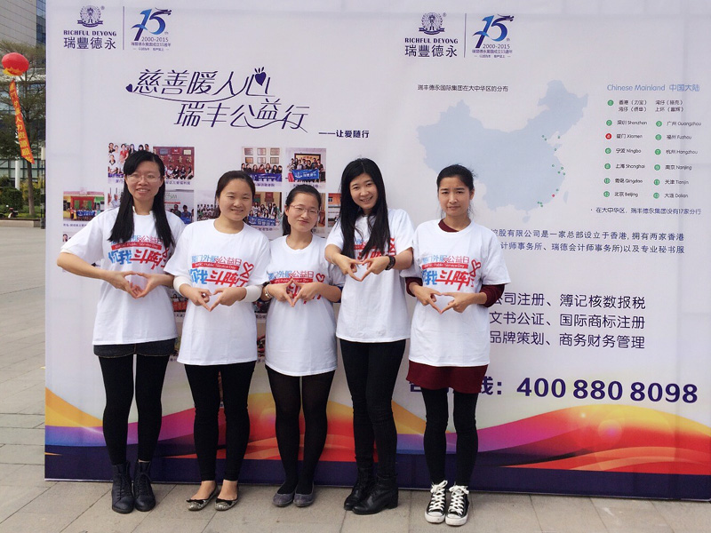 2014年11月15日,瑞丰德永集厦门公司参加了首届“厦门外服公益日”活动?;疃ㄆ笠嫡故?、物品义卖、衣物捐赠及环保宣传等主题内容。
