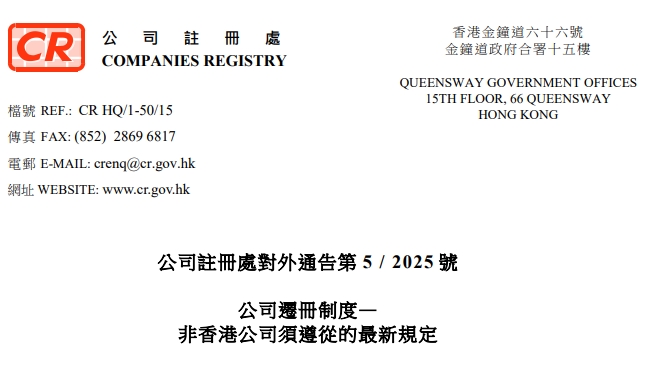 2025-08-14 11:29:44《公司条例》(第622章)(下称「该条例」)已于2025年5月23日作出修订,相关的《2025年公司(修订)(第2号)条例》除引入新的公司迁册制度外,亦更新了根据该条例第16部注册或将予注册的非香港公司须遵从的规定。