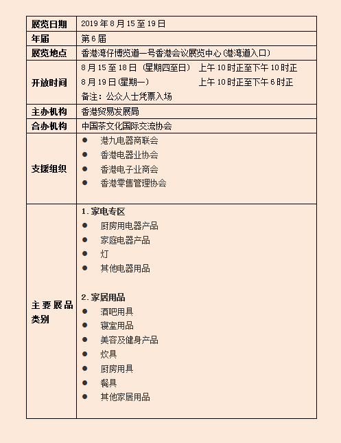 香港贸发局家电.家品.博览为业界提供一个理想平台,让展商推介新产品,强化品牌及推广优惠给公众。超过180家参展商参与2018年博览。博览与香港贸发局主办的美食博览、香港国际茶展及美与健生活博览同期举行。2018年共吸引510,000名参观人士。