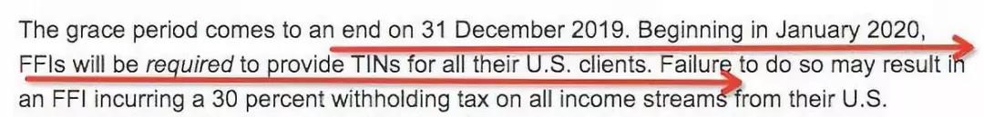 所有美国公民、美国绿卡持有人,以及常住美国的人士注意了:从2019年12月31日开始,美国国税局IRS,将最终结束其长期运行的《海外账户纳税法案》(FATCA“肥咖”条款)宽限期??硐奁谝坏┙崾?,只要你账户符合“美国人身份”(后文有详细解读),就必须提供美国税号(TIN),海外账户被查出没有申报,除了会面临高额??钔?,账户会被美国国税局冻结,甚至面临刑事处罚!这意味着希望避免账户冻结的美国纳税人,现在只有不到一个星期的时间,来应对可能的后果。