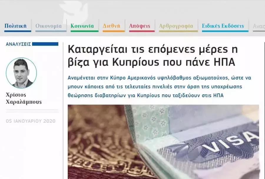 当地时间1月7日,塞浦路斯外交部长尼科斯?赫里斯托多利德斯(Nicos Christodoulides)表示,塞浦路斯前往美国的签证豁免可能很快就会有进展。