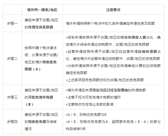 居民个人按照以下主要步骤确定境外税收抵免: