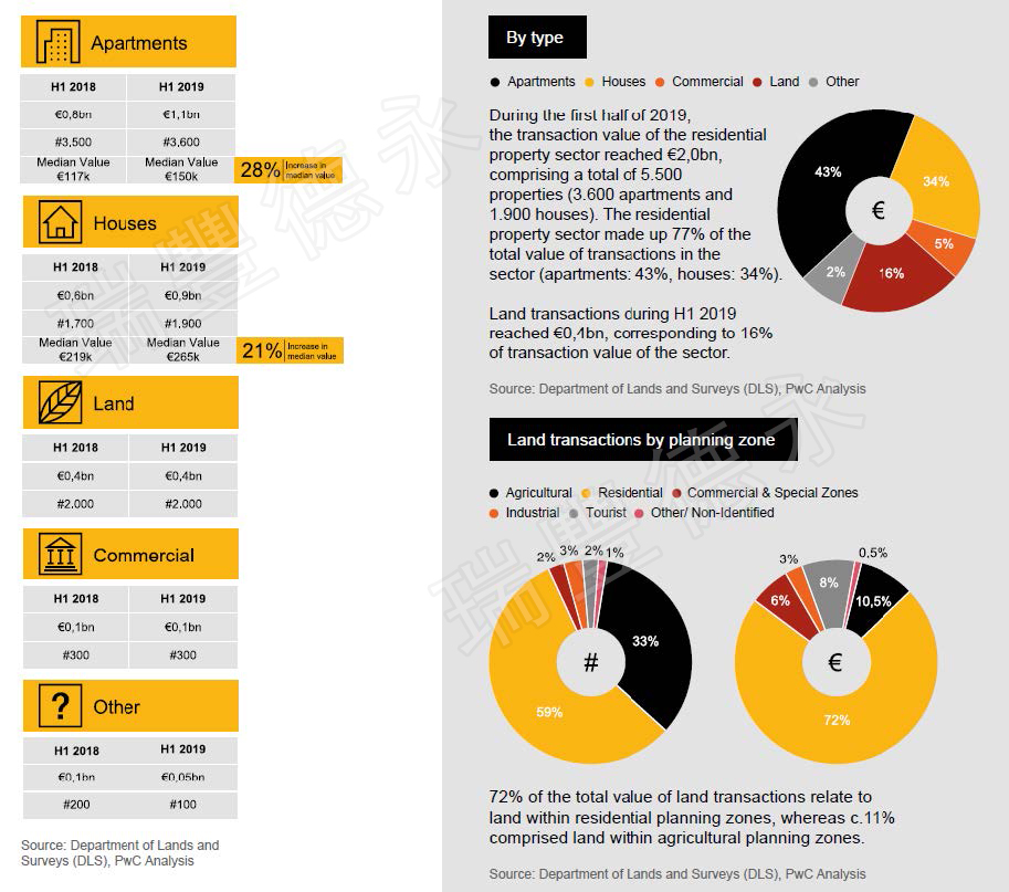 普华永道(PWC)的塞浦路斯房地产市场报告称,与去年同期相比,2019年上半年的房地产交易(销售合同和转让)价值增长了25%,达到25亿欧元。建筑活动继续扩大,同一期间建筑许可证总值增加了一倍以上。