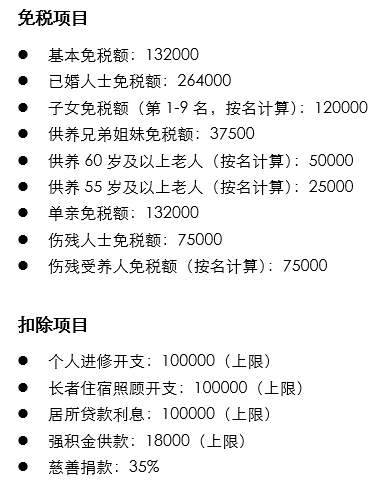 ↓中国内地个税减免项目↓