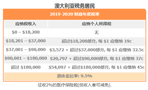 澳大利亚个人所得税税率采用超额累进税率,从0~45%不等。