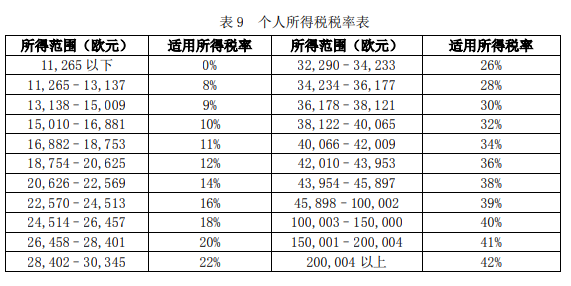 201911日起,爱尔兰个人所得税40%收税比例的起征点从€34550上调至€35300。年收入在€35300以下的单身人群,只需按照20%的比例缴纳个税即可(有家庭者税率更低);年收入超过€35300,那么超出的部分按照40%的比例缴纳个税。