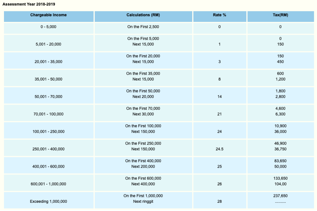 马来西亚个人所得税税率采用超额累进税率,从0~28%不等,共11个等级。