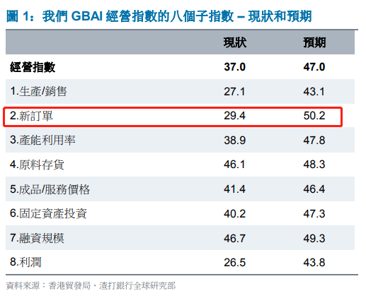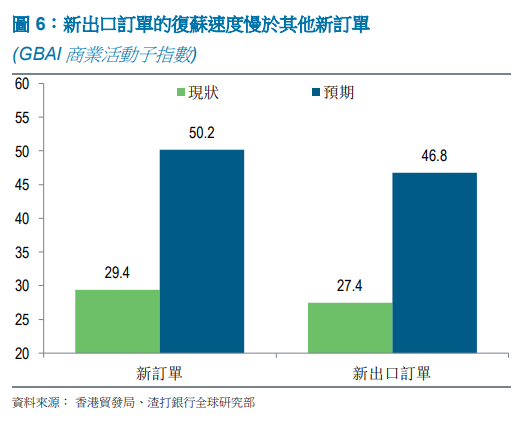 另一方面,「新出口订单」的增幅比(内地)净订单较低为46.8,表明在驱动粤港澳大湾区经济回升方面,内需发挥的作用可能要大于外需。