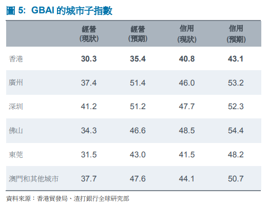“企业对未来预期广泛好转,其中新订单增长预期最为突出?!贝邮灼诒ǜ婵矗?020年第二季度,粤港澳大湾区的“经营现状指数”为37.0,表现疲软,“预期指数”47.0(中性值为50)。
