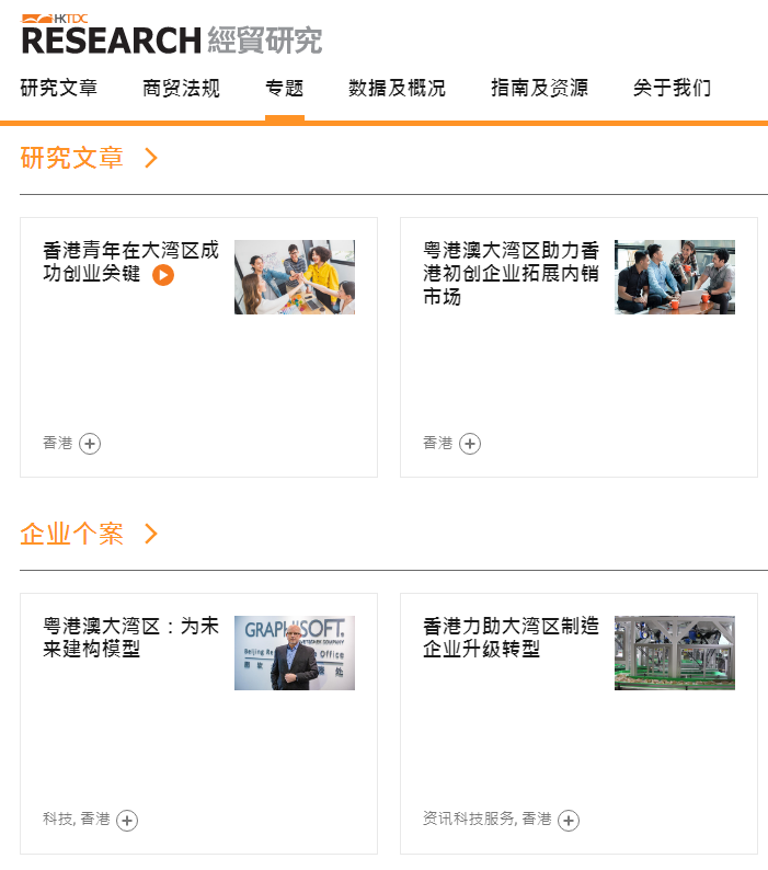香港贸发局官网会不定期更新个案研究,帮助港企、香港青年更加了解粤港澳大湾区。