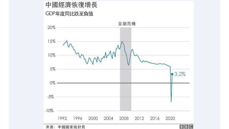 7月16日,中国统计局公布数据,二季度中国GDP 实际同比增速大幅回升转正至3.2%,此前路透社调查预估中值为2.5%,中国媒体财新的预测均值是2.6%,优于市场预期。
