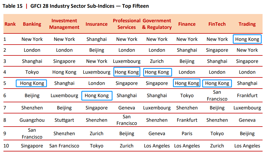 925日,英国智库Z/YenGroup与中国(深圳)综合开发研究院联合发布的第28期“全球金融中心指数”(GFCI 28)报告显示,香港以743的综合评分位列全球第五。