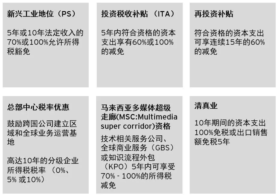 ? 已经在马来西亚注册的公司将其海外设施迁移至马来西亚,资本投资额达3亿马币以上将可获得为期5年的100%投资税收减免。