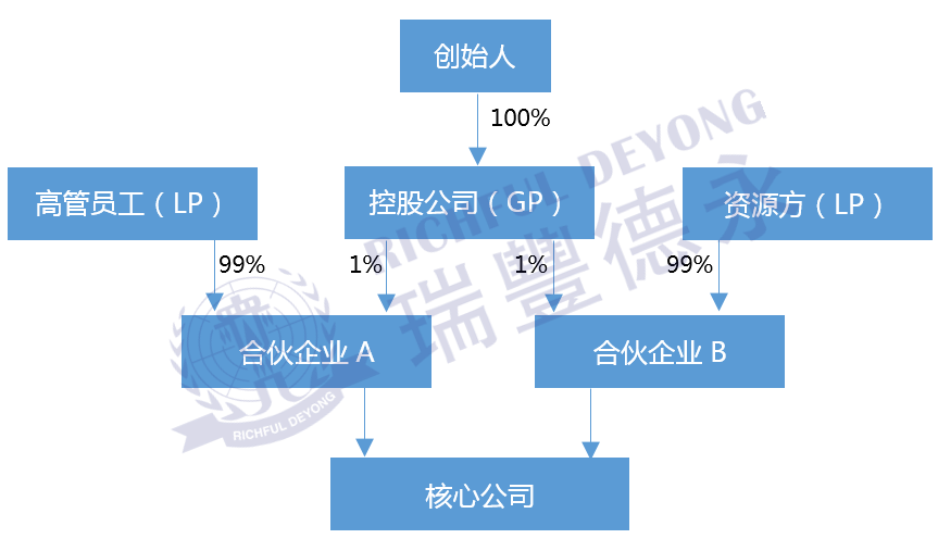 在有限合伙企业中,股东并不是直接持股拟设立的核心公司,而是先由股东搭建有限合伙企业作为持股平台,再由持股平台作为持有核心公司。