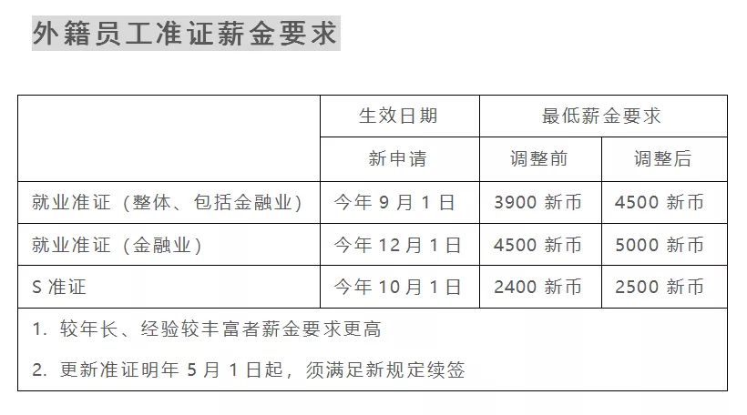 此外,新加坡政府还对金融业设立最低薪金门槛,2020年12月份开始,对外国准证持有者的薪金调高至5000新币。