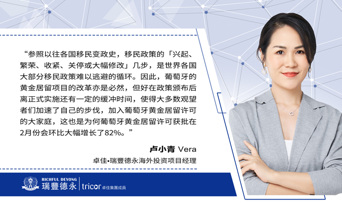 面对葡萄牙2月黄金居留许可大幅增长的数据,瑞豐德永海外投资项目经理卢小青女士分享了她对当前葡萄牙投资移民形势的见解。