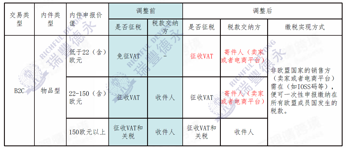 欧盟针对非欧盟来源的B2C包裹征收VAT规则的变化