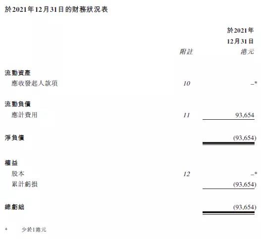 招股书显示, Aquila Acquisition在最近一个期间(自注册成立以来至2021年12月31日),其净亏损为 9.3654 万港元;截至2021年12月31日,其净负债为 9.3654万港元。