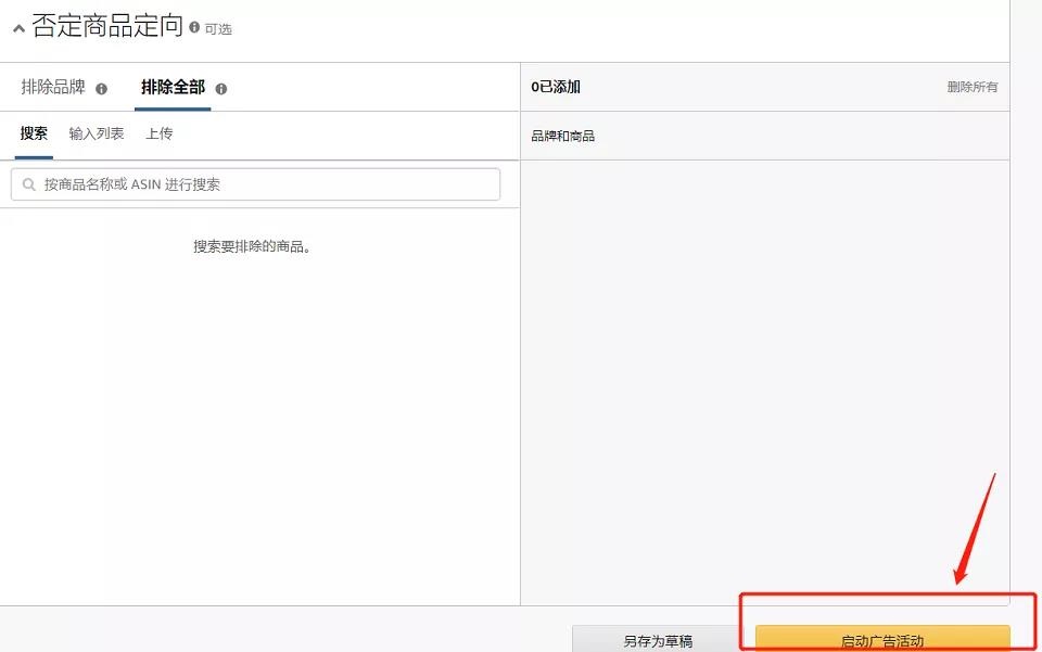 第十一步:点击【启动广告活动】,完成手动商品广告的设置。