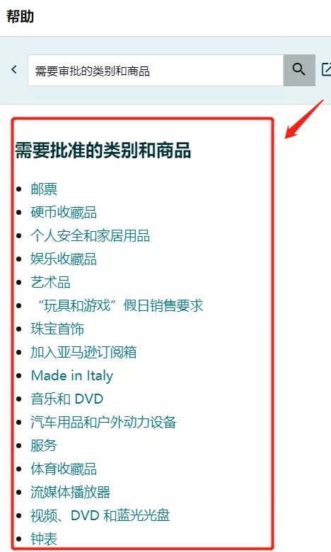 在亚马逊卖家后台搜索框中输入——需要审批的类别和商品。