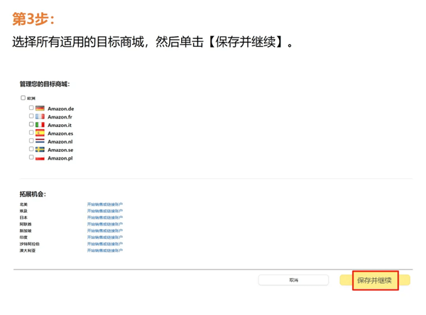 步骤二:在英国店铺以及以下任一或所有欧盟店铺中发布商品信息:德国、法国、意大利和西班牙