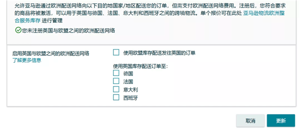 您也可以点击【设置】>【亚马逊物流】>【跨境物流设置】, 激活您想要启用欧洲配送网络(EFN)的国家。