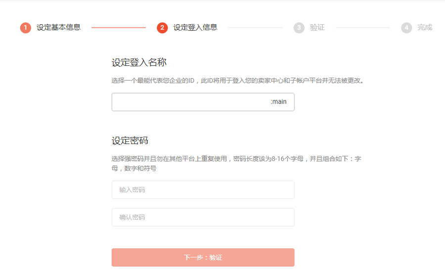 1、线上创建主账号:需要卖家提供电话和邮箱用于绑定主账号,主账号用于管理新店申请,和之后所有的店铺运营,同时用于绑定收款账号。