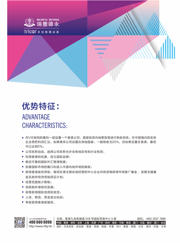 9、香港的国际地位显着,后起的企业常用香港的知名度为企业加以包装,在国际上争取到一定的竞争优势;在香港成立公司,马上可以分享到总体的国际形象和地位,提升公司自己的竞争能力。