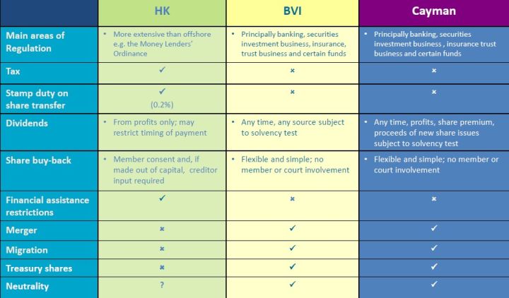 注意:虽然BVI公司条件更好,但是对于BVI设立的公司,其股东信息保密,每年无需做审计报告,是无法通过上市监管的,在这种下,一般企业会选择监管更加严格,但是又无税收的开曼公司作为海外上市主体。除此之外,将上市主体设立在开曼公司,是因为目前中国香港只允许注册地在中国香港、中国、百慕大、开曼这四地公司在港上市。
