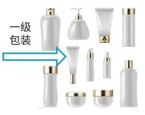 一级包装:用于包装商品的包装单元,例如, 化妆品的包装瓶。