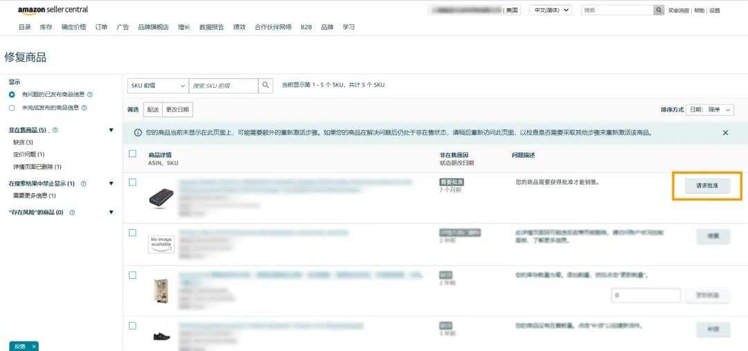 ③ 这会将您引导至邮件通知中提供的修复商品页面,您可以点击对应商品的“请求批准”按钮;