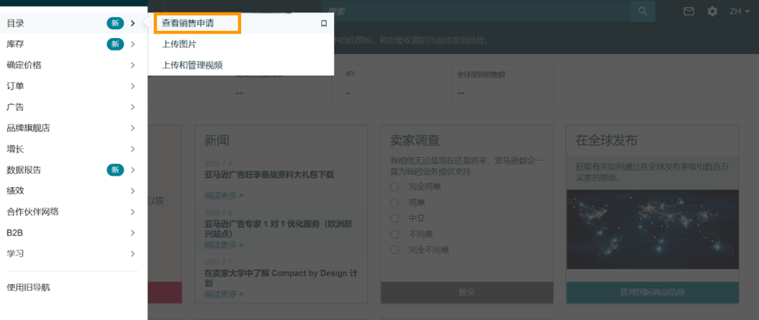 请注意,您也可以从这里直接进入销售申请工作流程:选择“目录”>“查看销售申请”。