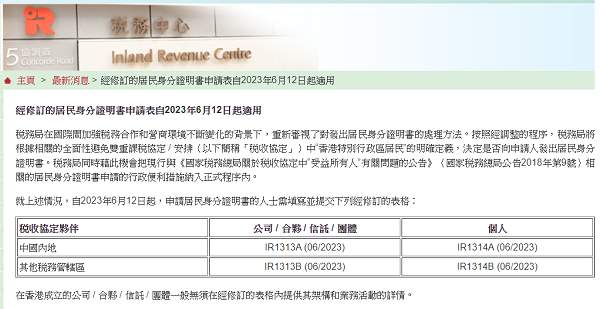 在国际间加强税务合作和不断变化的营商环境的背景下,香港特别行政区税务局(以下简称“税务局”)重新审视了发放居民身分证明书的处理方法,并宣布自2023年6月12日起,税务局将根据相关的全面性避免双重课税协定/安排(以下简称“税收协定”)中“香港特别行政区居民”(以下简称“香港居民”)的明确定义,决定是否可以向申请人出具香港居民身分证明书。