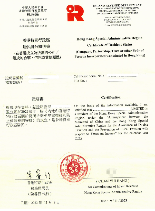 RICHFUL瑞丰亦可以协助申请香港税务居民身分证明书以及中港税收协定优惠的申请服务: