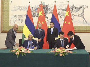 中国与毛里求斯于17日正式签署自由贸易协定,成为我国商签的第17个自贸协定,也是我国与非洲国家的第一个自贸协定。