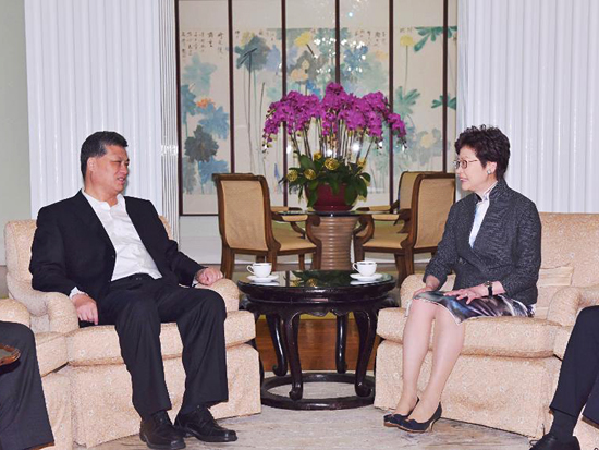 3月28日,香港特区行政长官林郑月娥在礼宾府与广东省省长马兴瑞进行早餐会议,就粤港澳大湾区建设和粤港合作事宜交换意见。