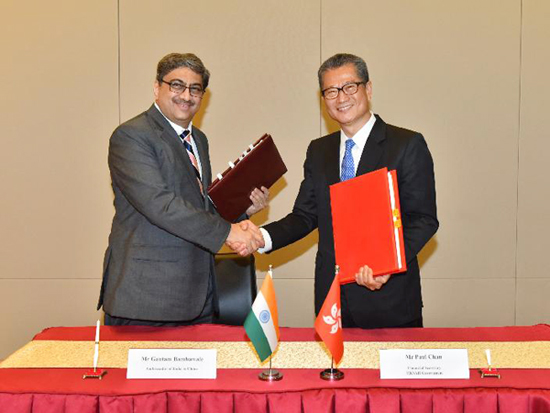 3月19日,香港财政司司长陈茂波代表香港特别行政区政府在香港与印度驻华大使Gautam Bambawale签署全面性避免双重课税协定(全面性协定),标志着特区政府在扩阔香港税收协定网络方面继续取得成果。