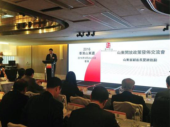 “2016香港山东周”21日在香港举行山东开放政策发布交流会?;嵘?,山东省政府与香港贸易发展局签署2016鲁港经贸合作备忘录,推动鲁港多领域深化合作。